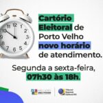 O Tribunal Regional Eleitoral de Rondônia (TRE-RO) informa que o Cartório Eleitoral de Porto Velho, está com novo horário de atendimento ao público: das 07h30 às 18h, de segunda a sexta-feira. A ampliação tem como objetivo facilitar o acesso das eleitoras e dos eleitores que precisam regularizar o título eleitoral e manter a situação em dia com a Justiça…