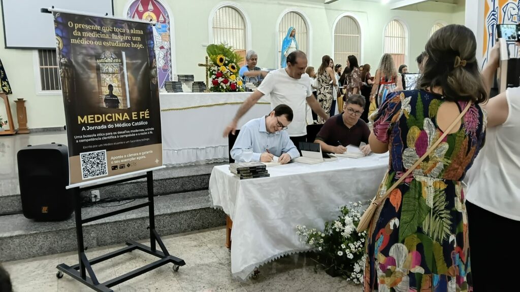 Na noite deste domingo (14), o padre Geraldo Siqueira e o oftalmologista Dr. Cleiton Bach receberam a comunidade e amigos para o lançamento do livro Medicina e Fé: A Jornada de um Médico Católico. O evento aconteceu após a Santa Missa das 18h, no salão paroquial da Catedral Sagrado Coração de Jesus, em Porto Velho.